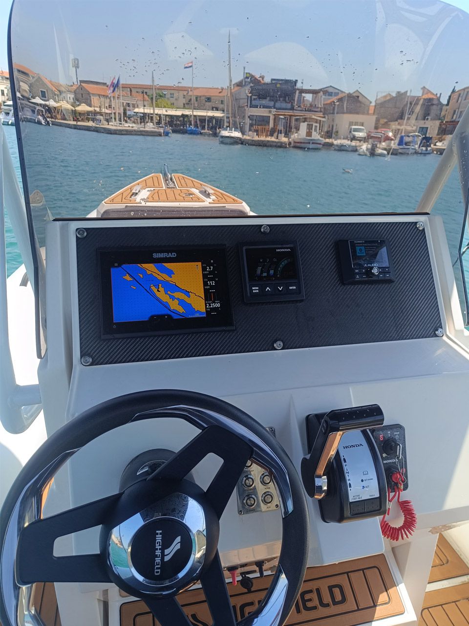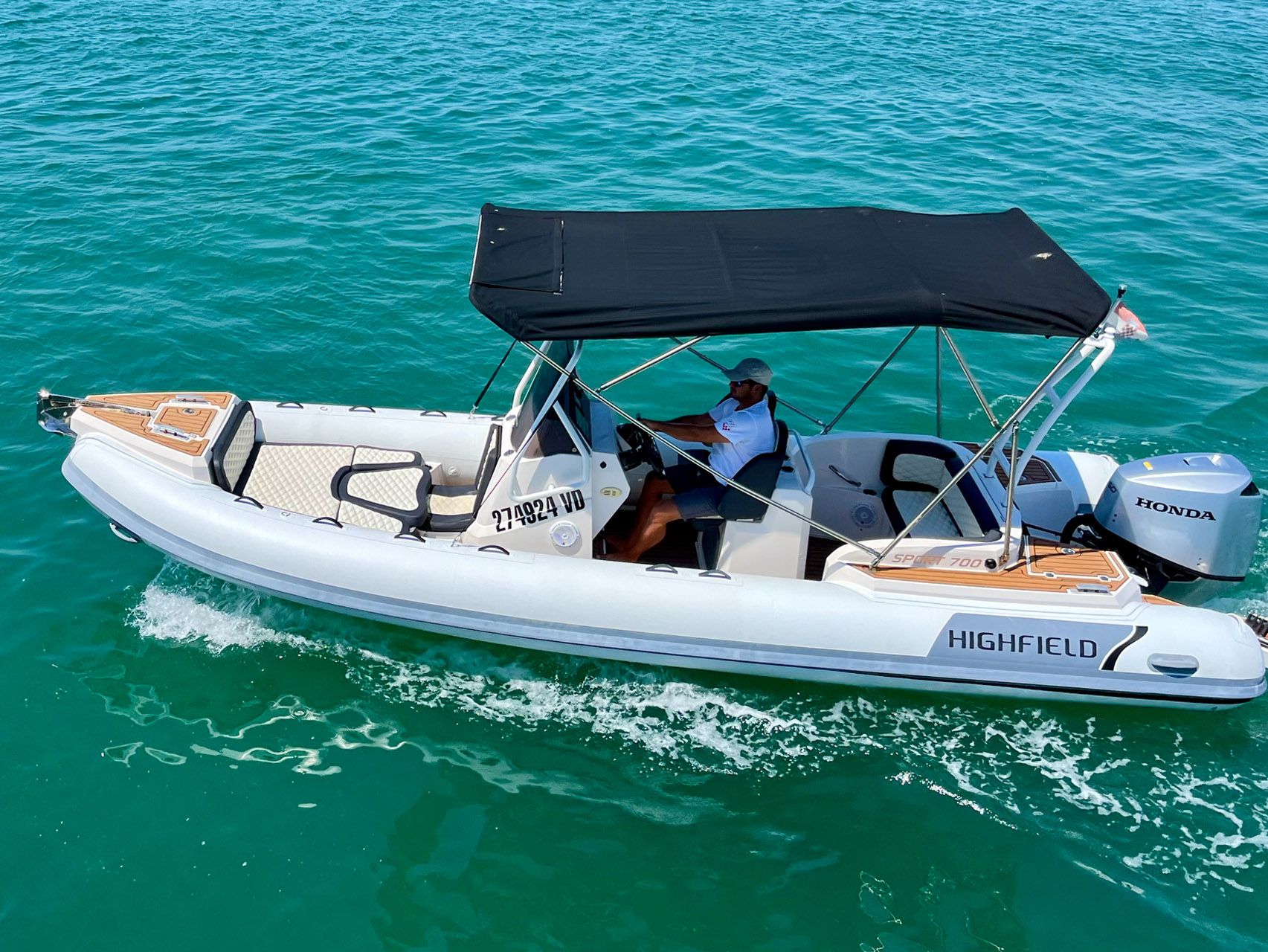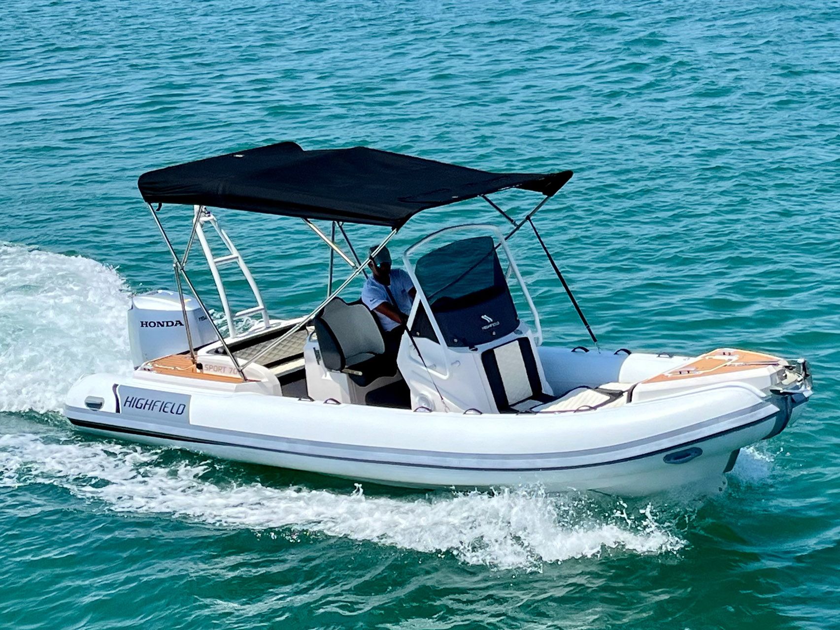 Designed to help you make the most of your time on the water, the Sport 700 is Highfield's elegant, spacious, and ultra-capable powerhouse. The adaptive seating allows for multiple seating configurations, offering incredible comfort and space for the whole family to eat and relax. Good footrest position and adjustable helm seating. The Sport 700 has an internal beam of close to 1.5m and an internal length of 7m. This means there's plenty of real estate available! To best utilise the space, the console is wide enough to allow room on either side to transit to and from the bow. The boat is equipped with GPS, Radio, and shower.
