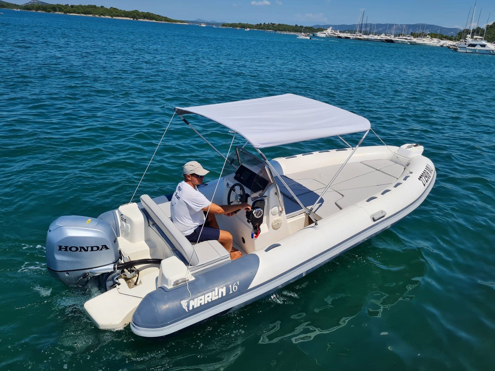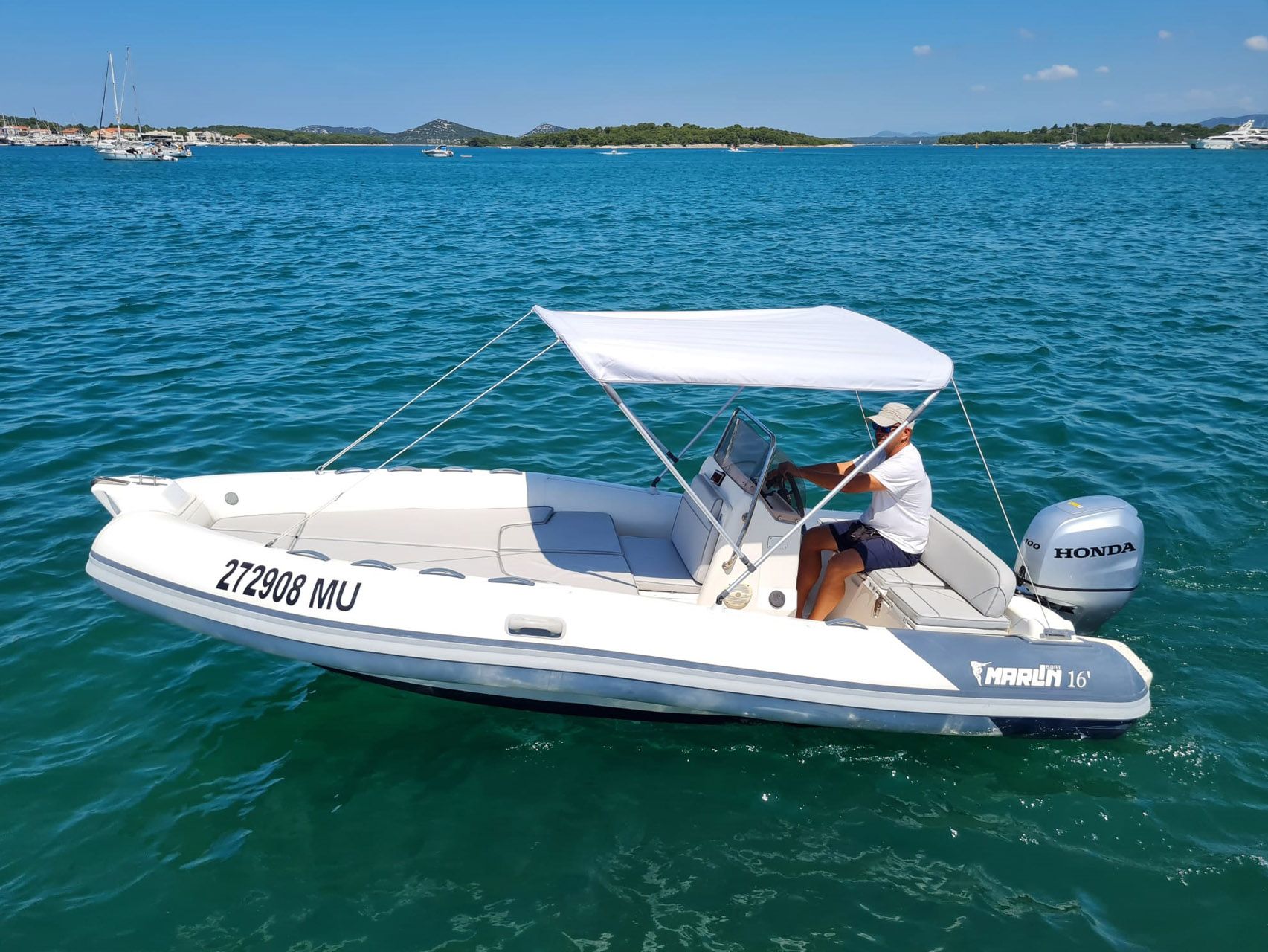 Welcome to our compact RIB the Marlin 16. Our boat is a perfect way to explore the wonderful pieces of coast that sits around the island of Murter as well as the neighboring islands in the vicinity that provide a true sanctuary from the bustling and hustling of everyday life.